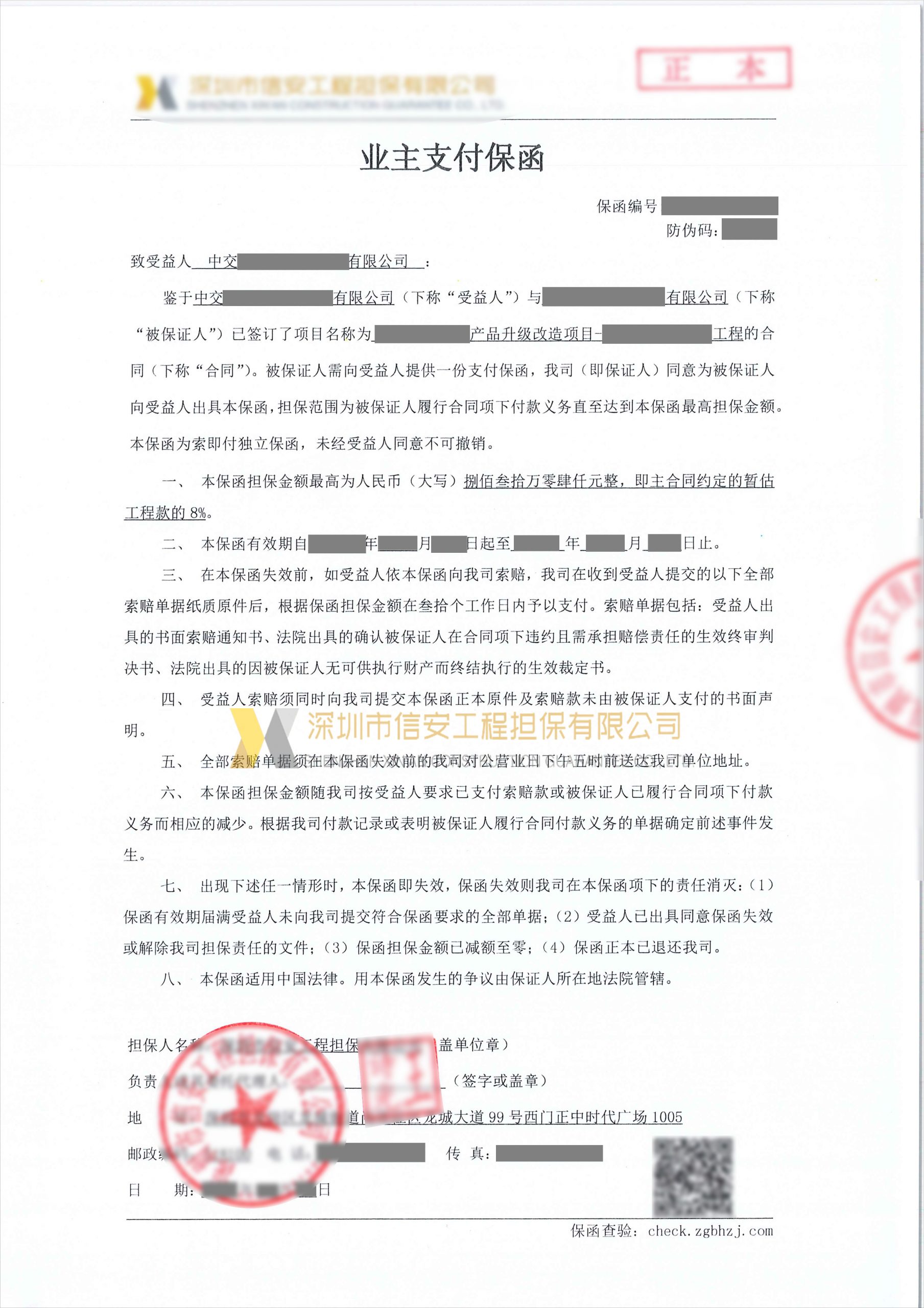 保函真伪:通过保函编号和防伪码可在我司官网上查看到保函信息