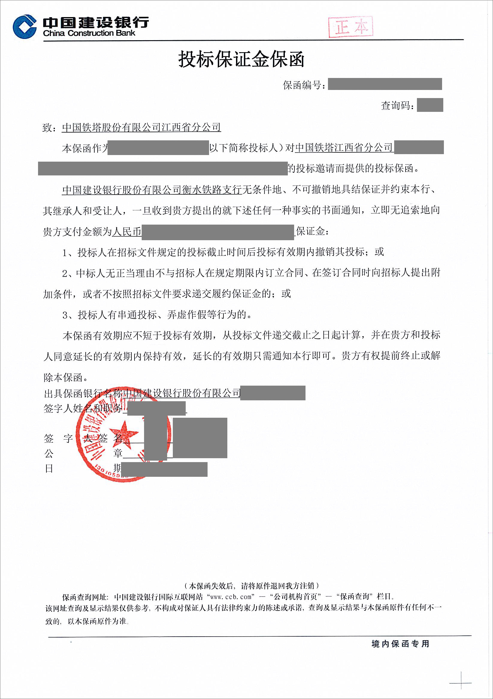 以纸质银行保函形式递交的投标保证金(如有):若投标人以纸质银行保函的形式递交投标保证金,则应在 5.1 条款载明的投标文件递交截止时间前,将银行保函纸质原件递交至【江西省南昌市丁公路 38 号】。