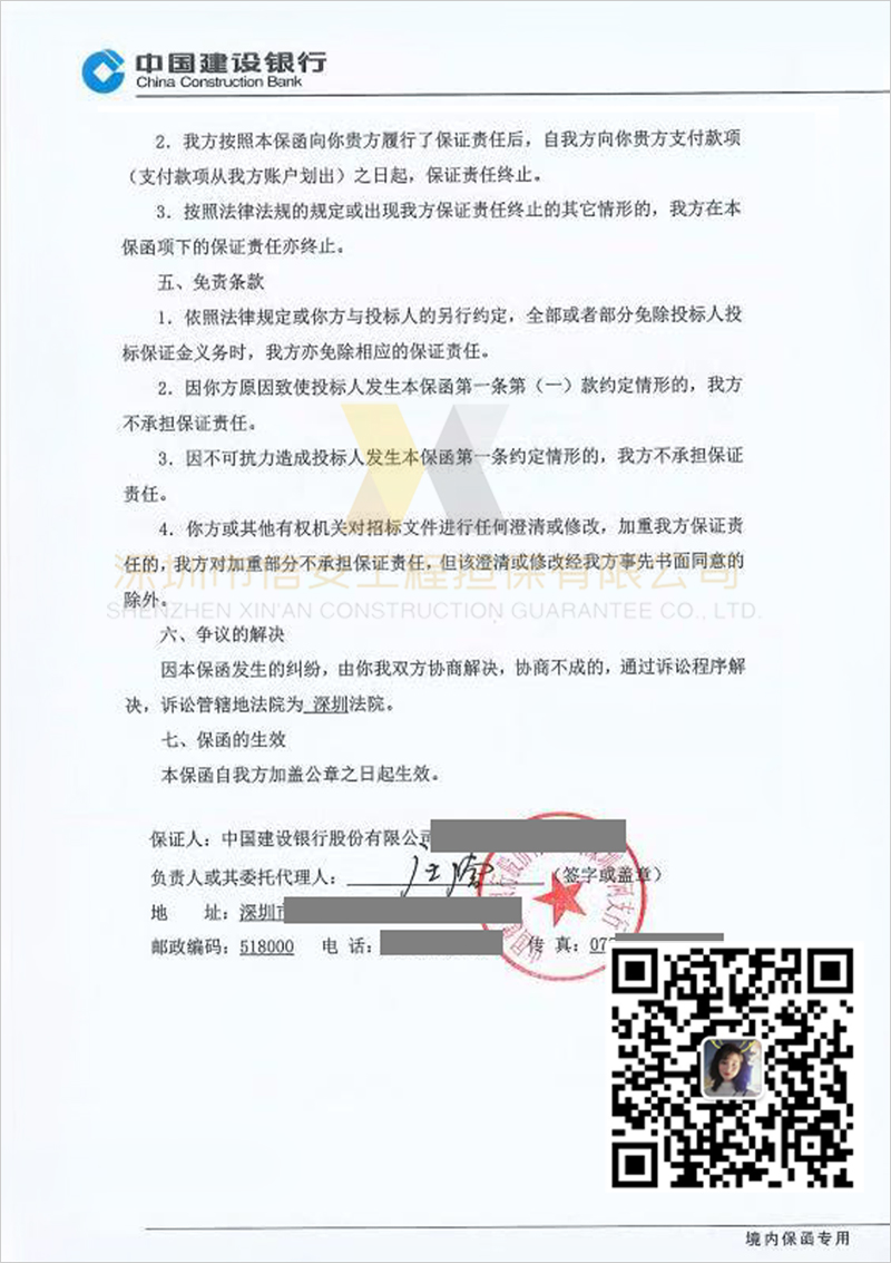 1.依照法律规定或你方与投标人的另行约定,全部或者部分免除投标人投标保证金义务时,我方亦免除相应的保证责任。