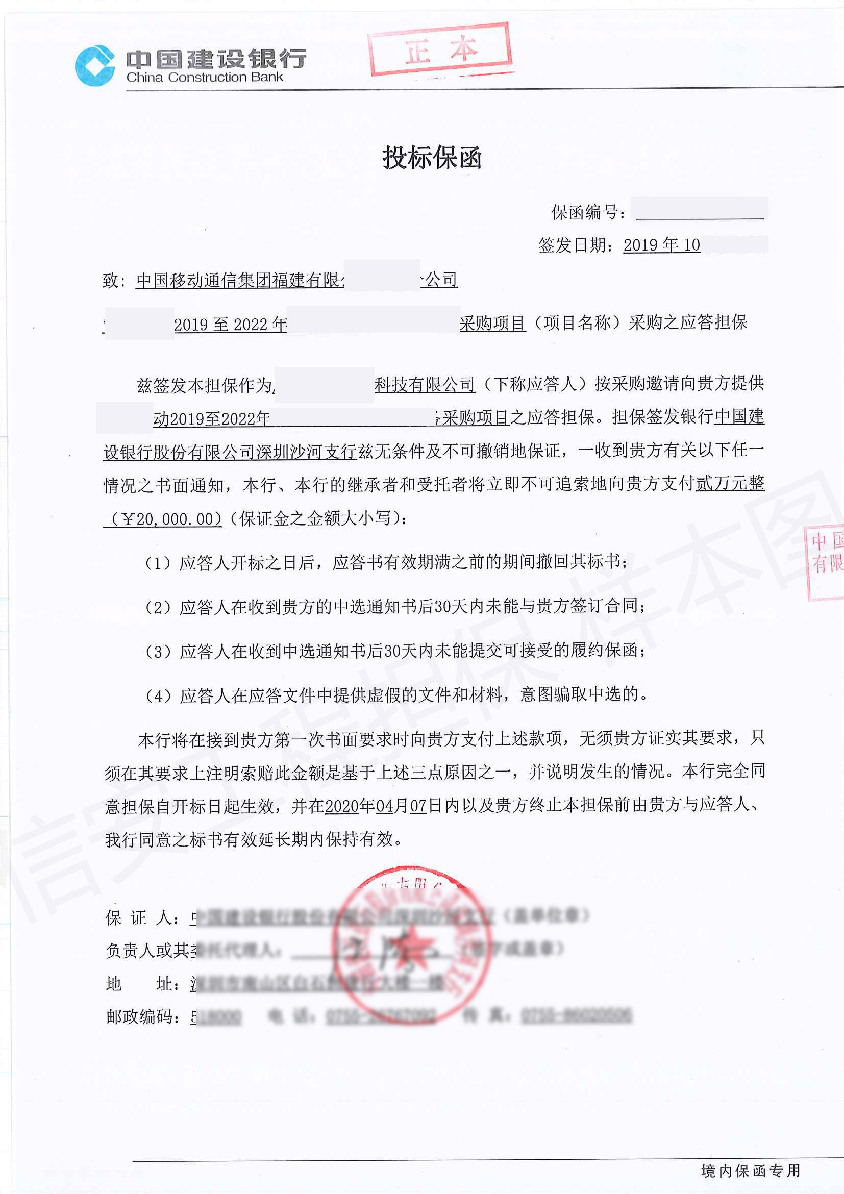 - 保函必须注明保函的适用范围即参与应答的项目名称,例如:“中国移动xx项目”;