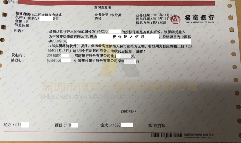 案例背景问:某投标单位办理了一份投标保函,但是由于事先没有给办理保函的业务经理说需要查询码,结果保函开出来,只有保函编号等信息;投标单位听说可以通过电文查询保函真伪,不知道具体操作?