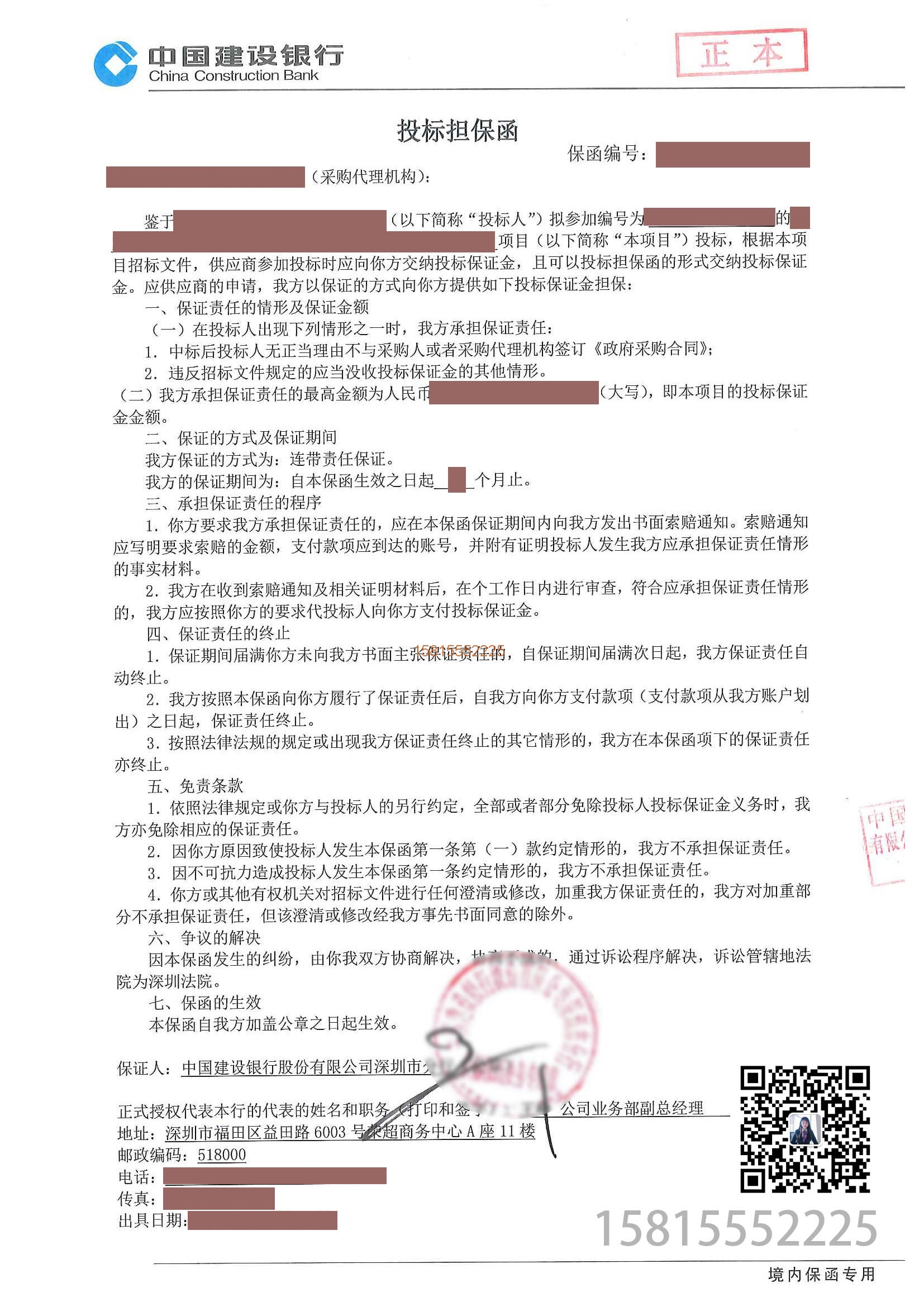 1.依照法律规定或你方与投标人的另行约定,全部或者部分免除投标人投标保证金义务时,我方亦免除相应的保证责任。