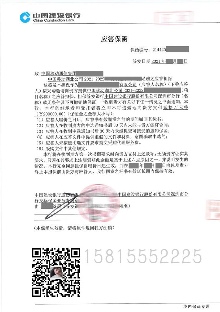 - 保函必须注明保函的适用范围即参与应答的项目名称,例如:“中国移动xx项目”;
