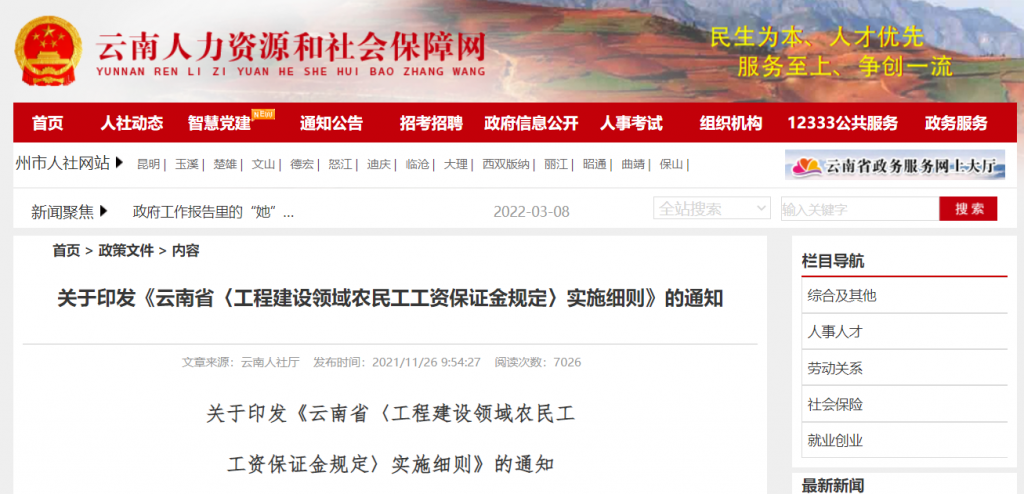 为认真贯彻落实《人力资源社会保障部 住房和城乡建设部 交通运输部 水利部 银保监会 铁路局 民航局关于印发〈工程建设领域农民工工资保证金规定〉的通知》(人社部发〔2021〕65号),我们制定了《云南省〈工程建设领域农民工工资保证金规定〉实施细则》,现印发给你们。请与《工程建设领域农民工工资保证金规定》一并贯彻执行。