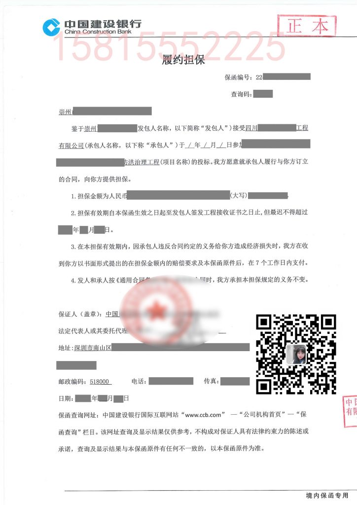 四川*工程有限公司股东咨询我司,办理银行保函如何收费。我司业务经理要求查看招标文件,中标书,合同,保函要求,看过之后了解到了客户资质,按照免保证金条件受理,只收取担保费。收到资料后3天出函。