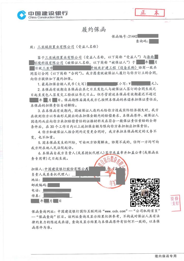 担保事项 三亚市*升级改扩建工程(设备采购)合同