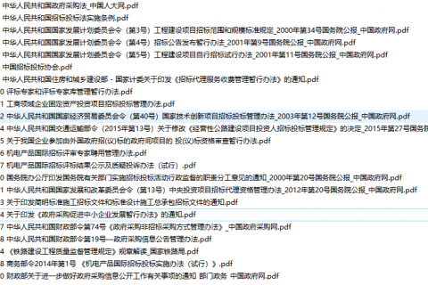 《中华人民共和国招标投标法》 《中华人民共和国政府采购法》 《中华人民共和国招标投标法实施条例》 《工程建设项目招标范围和规模标准规定》 《招标公告发布暂行办法》 《工程建设项目自行招标试行办法》 《工程建设项目可行性研究报告增加招标内容和核准招标事项暂行规定》 《国家重大建设项目招标投标监督暂行办法》 《招标代理服务收费管理暂行办法》 《评标专家和评标专家库管理暂行办法》 《工商领域企业固定资产投资项目招标投标管理办法》 《国家技术创新项目招标投标管理办法》 《机电产品国际招标投标实施办法》 …