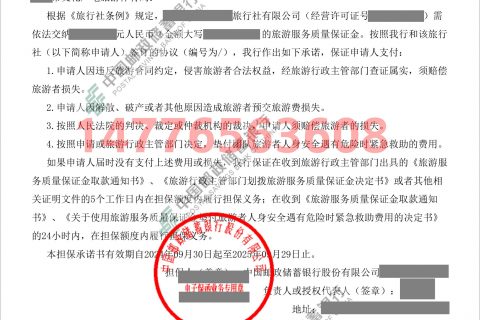 来源:保函网 邮政储蓄银行开出深圳市第一笔旅行社旅游服务质量保证金银行承诺函 节约企业现金流 深圳市某旅行社有限公司李总7天前联系到深圳市信安工程担保有限公司保函业务负责人了解到,目前已经接到一些旅行社咨询如何办理旅游服务质量保证金银行承诺函。 王书月经理表示,“当时接到这些询单的时候比较意外。我们公司办理保函有6年了,出过很多银行质量保证金保函,工程施工和物资供货项目比较多,但是没有听说过旅游服务质量保证金保函。了解到尚未缴足旅游服务质量保证金的企业于2024年3月31日前补齐保证金,或者提交…